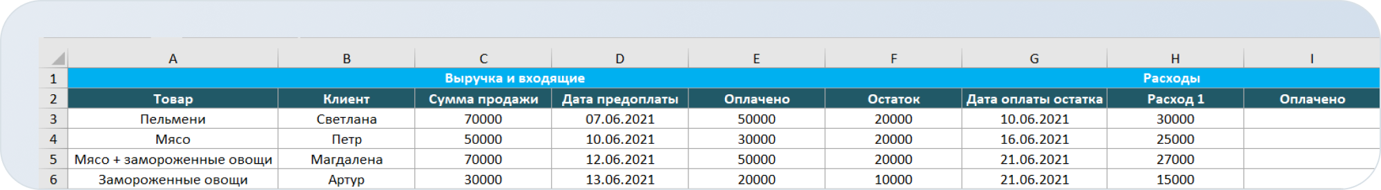 Это самый простой отчёт, который обычно ведут и начинающие предприниматели, и даже фрилансеры. В таблицу заносятся поступления и расходы компании.