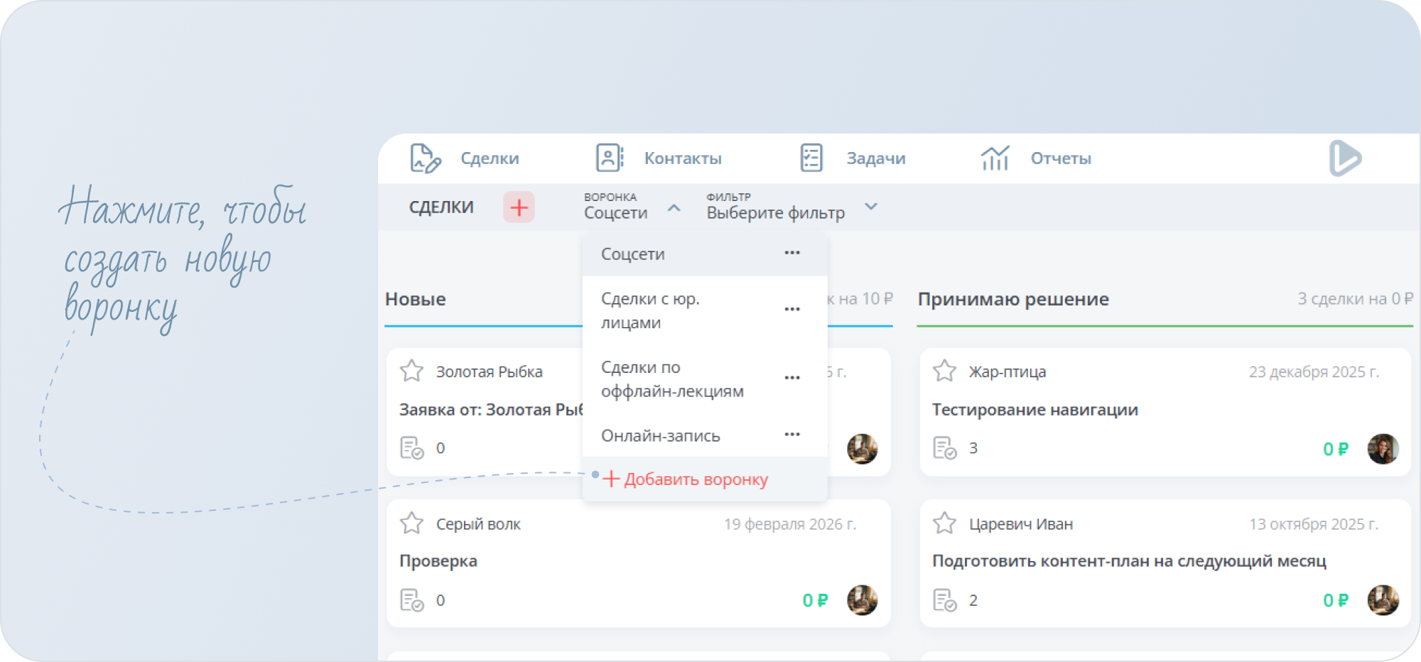 - Одна воронка — для генерации идей.