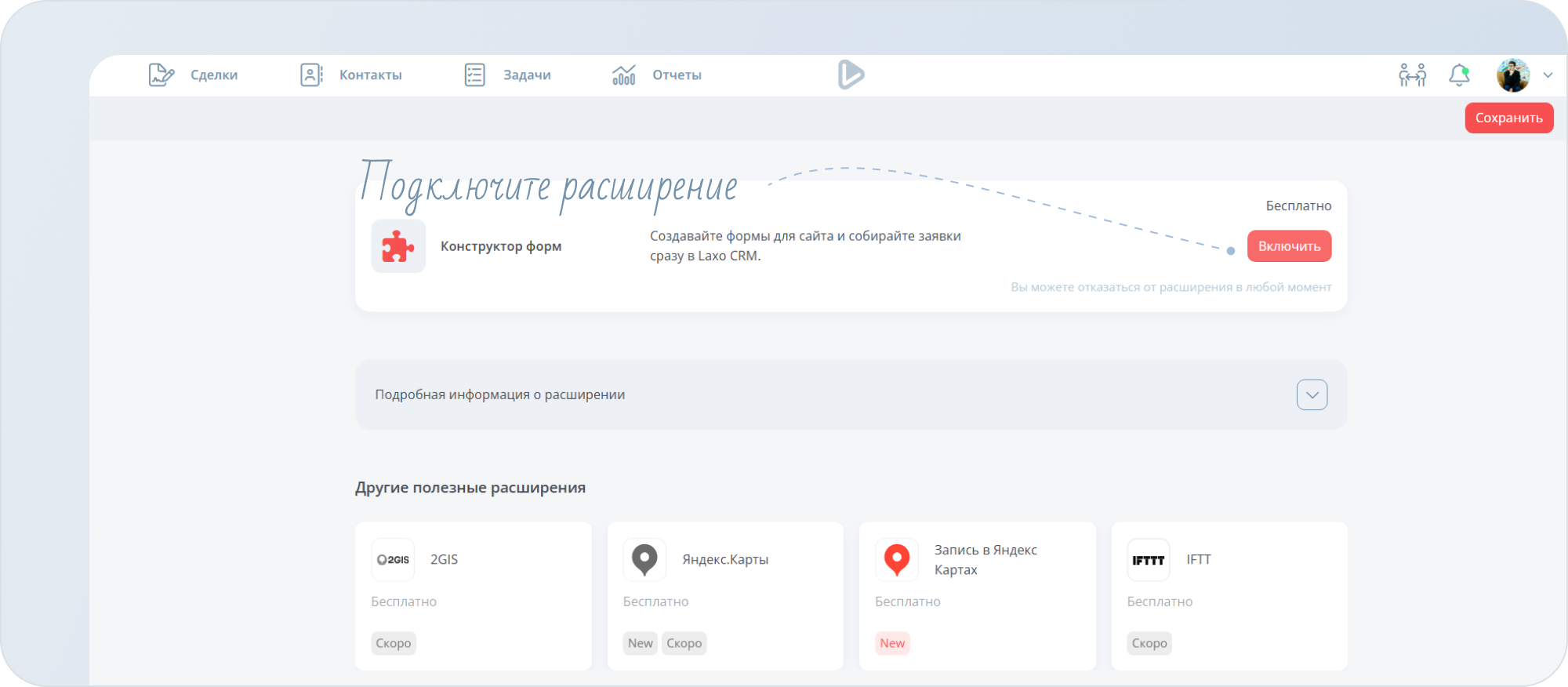 В конструкторе форм вы всего за несколько минут можете создать форму для заявок, опросов и других задач. Настройте поля, задайте текст после отправки формы и всё готово! Созданную форму можно распространять с помощью ссылки, QR-кода или встраивать на сайт. Все полученные данные автоматически сохраняются в laxo.