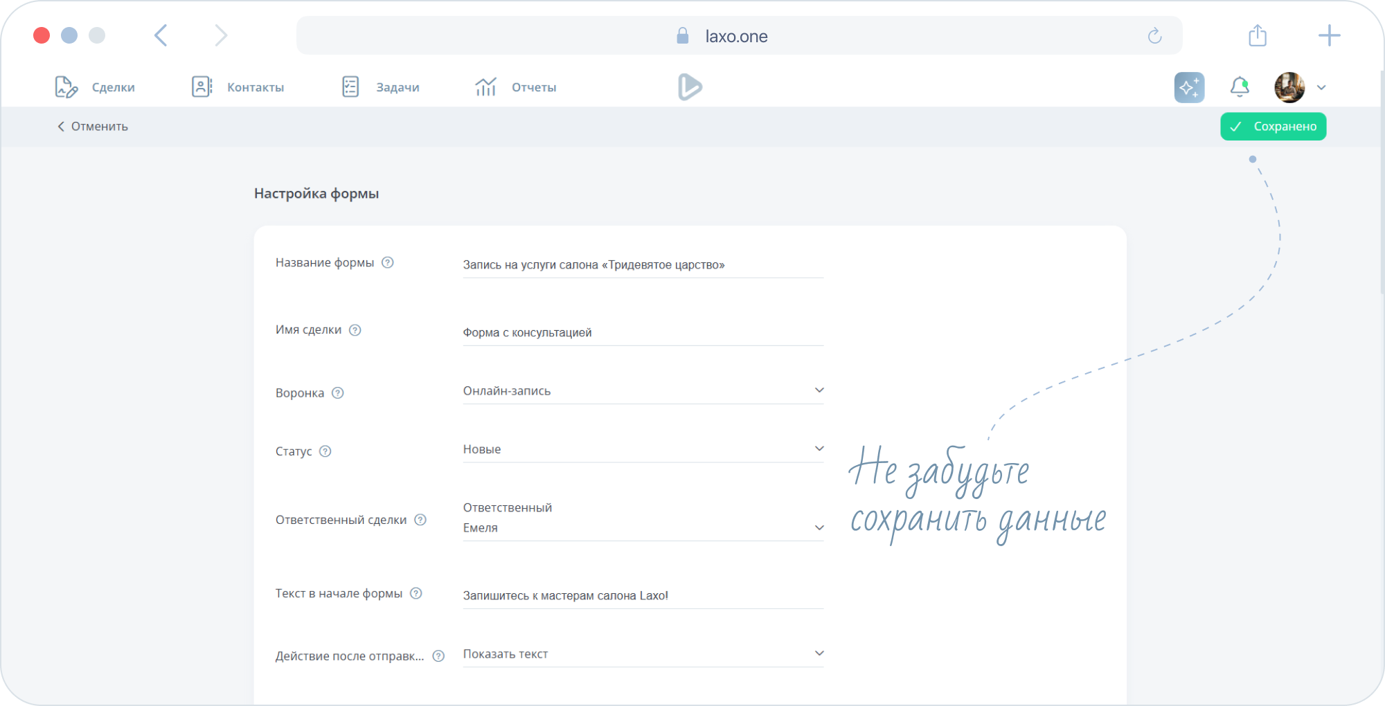 - Сохраните форму.