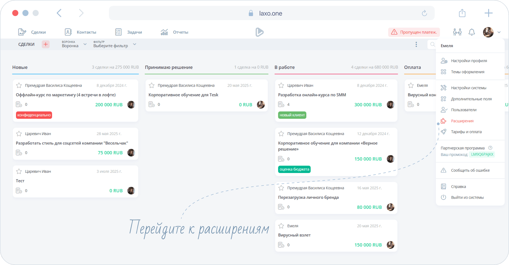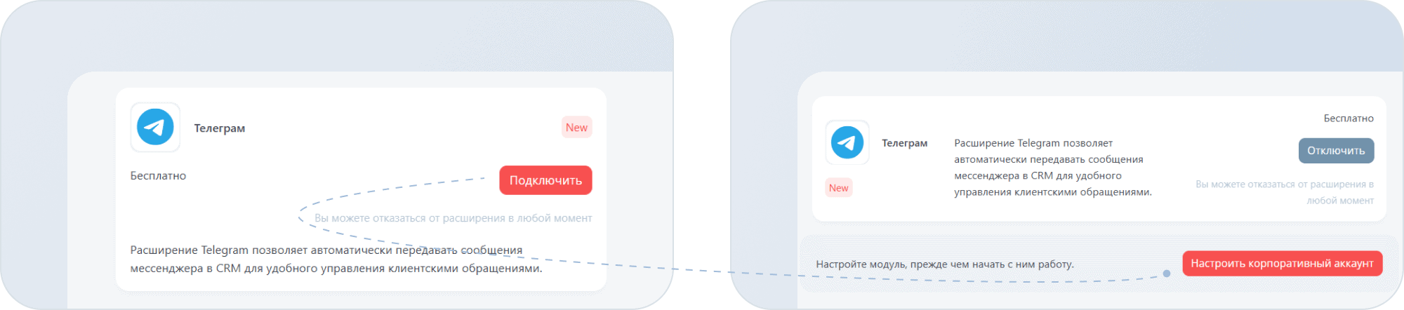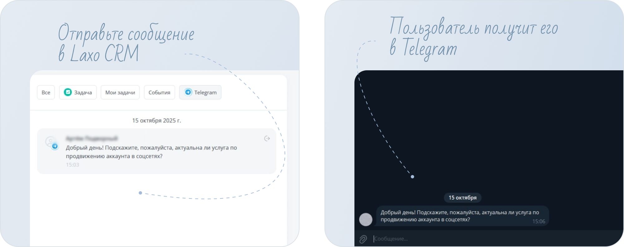 Расширение Telegram упрощает работу с клиентами: все обращения сразу попадают в систему, а отвечать на них можно прямо из интерфейса laxo. Подключите корпоративный или личный аккаунт, чтобы ваша коммуникация стала еще быстрее и удобнее.