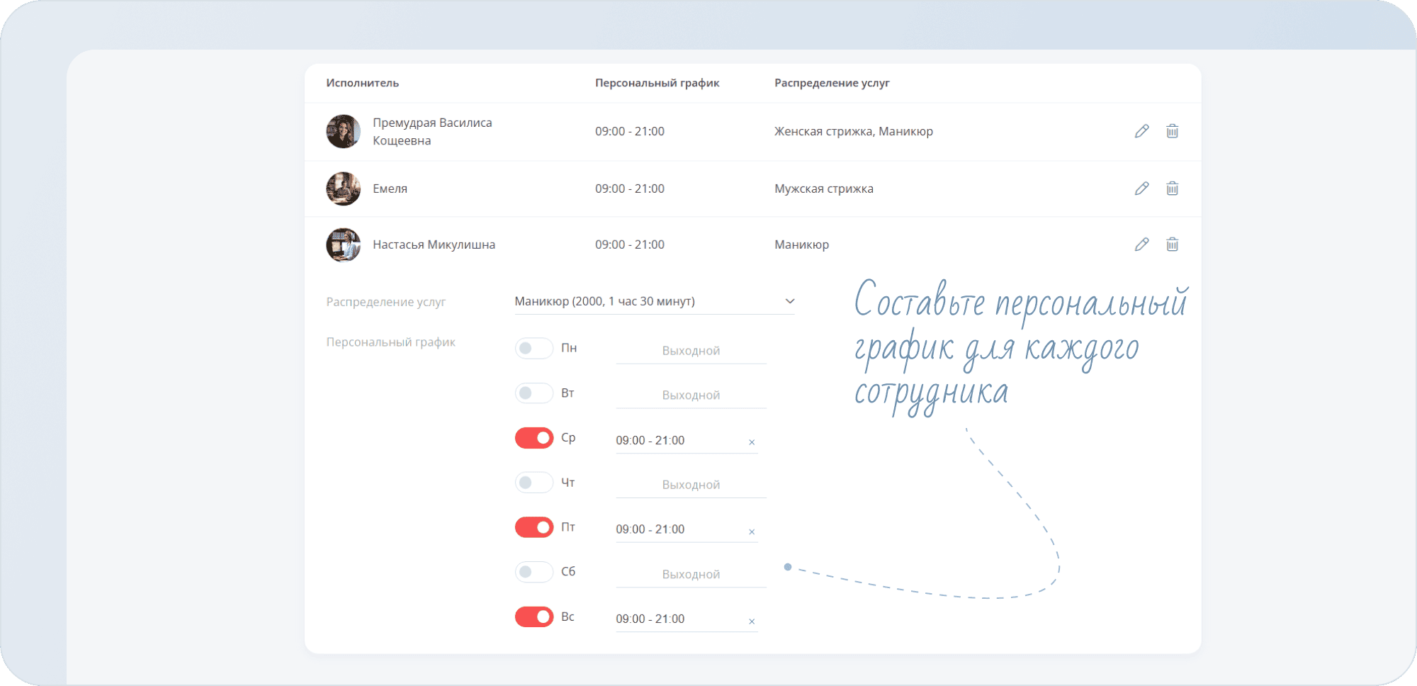 - Вы можете настроить их персональное расписание. Для этого нажмите