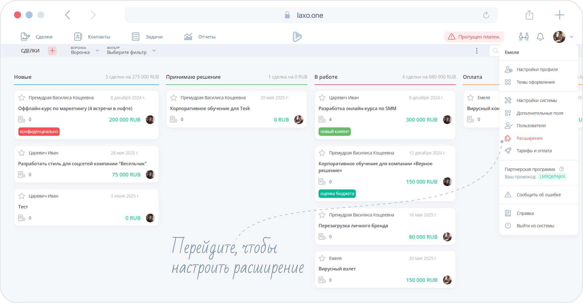 Для примера мы будем настраивать расширение под задачи салона красоты.