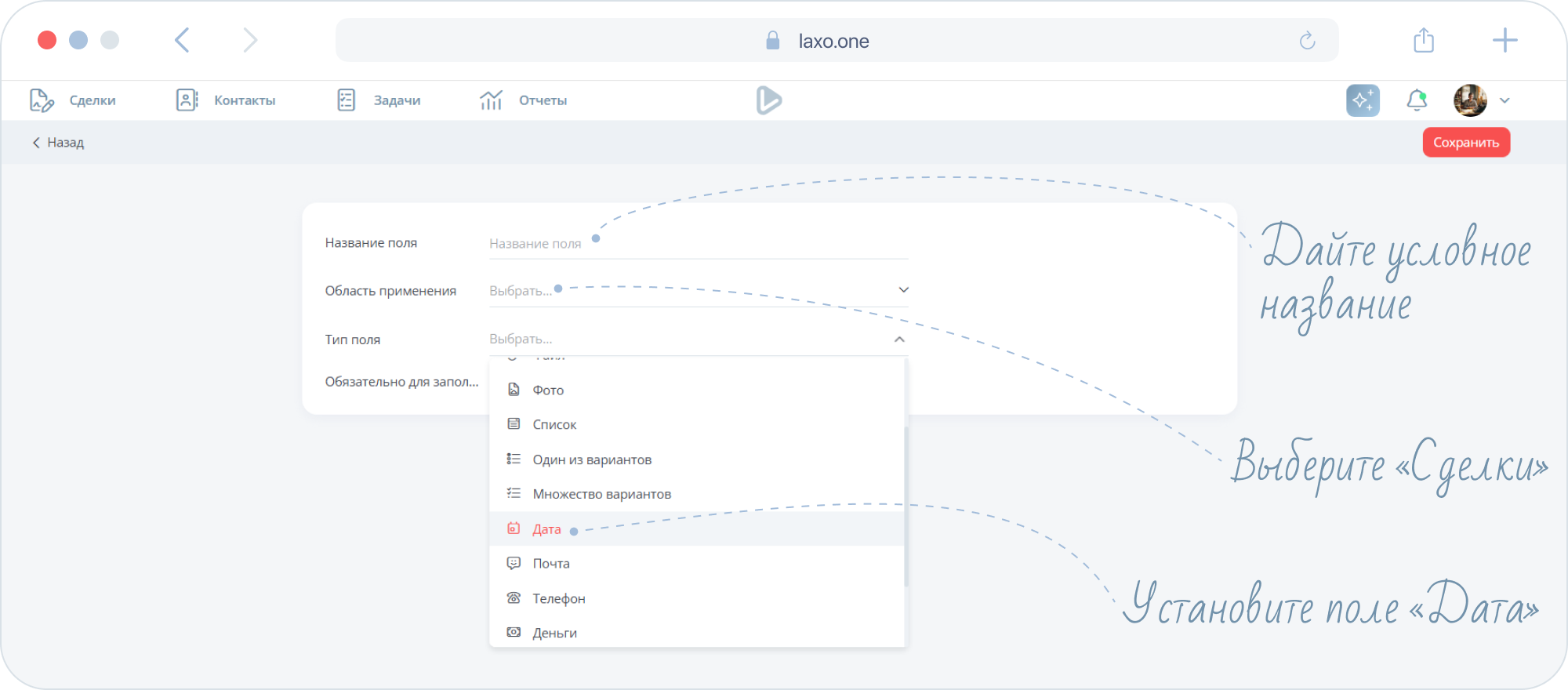 Не забудьте сохранить созданное вами поле.