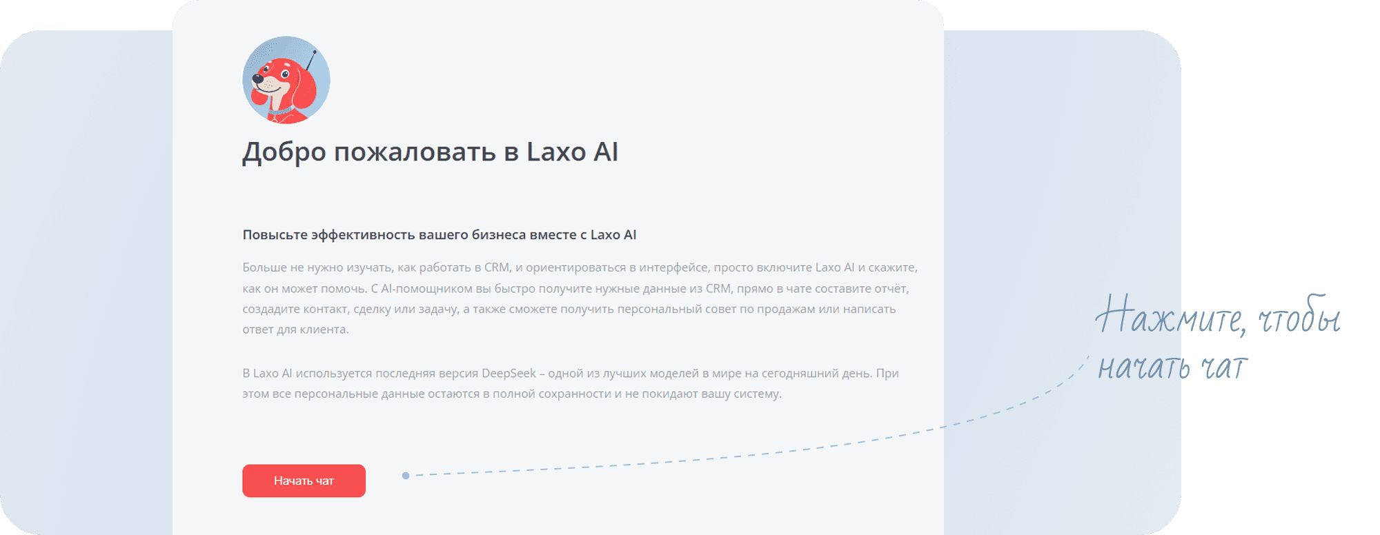 AI-помощник laxo работает на базе языковой модели DeepSeek. Все запросы обрабатываются внутри системы laxo без передачи данных внешним сервисам.