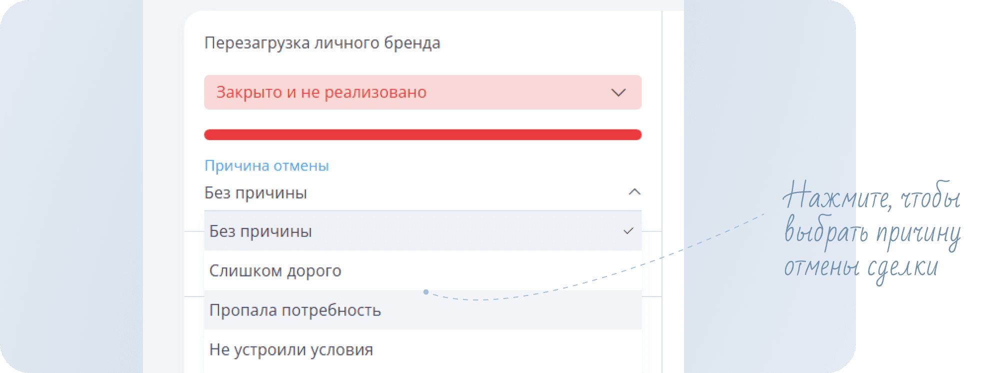 Подробнее о том, как открыть карточку сделки, написано здесь.