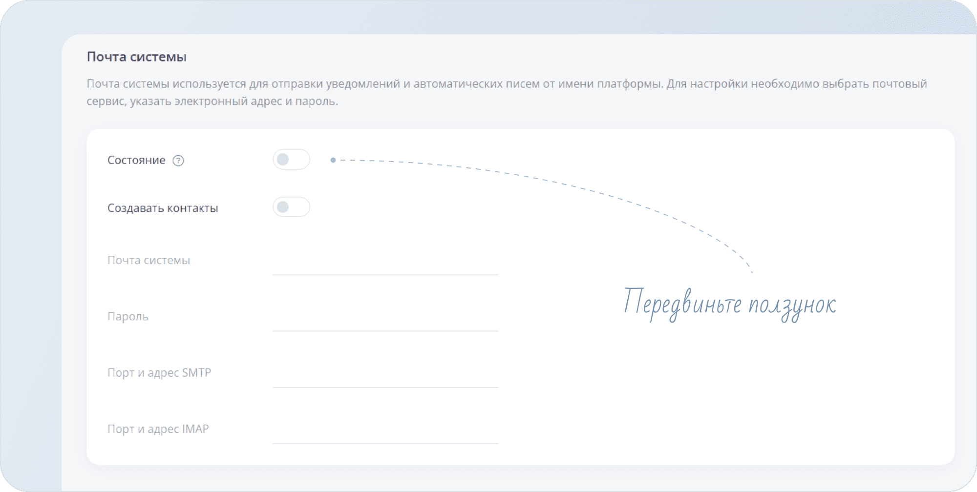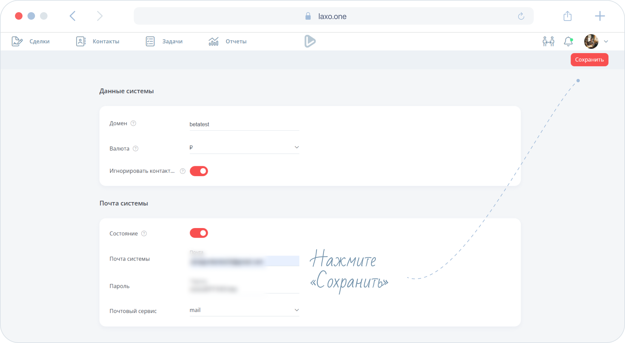 ДанныеиПочта. Эти настройки доступны только администраторам. Узнать больше о ролях пользователей можно на этой странице.