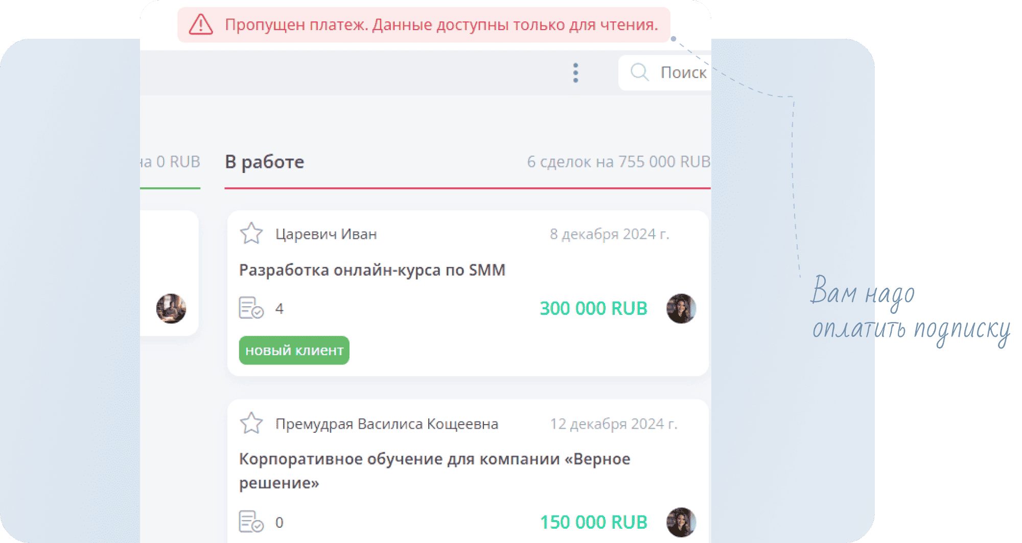 - Если вы пропустили платёж, система вам об этом сообщит.