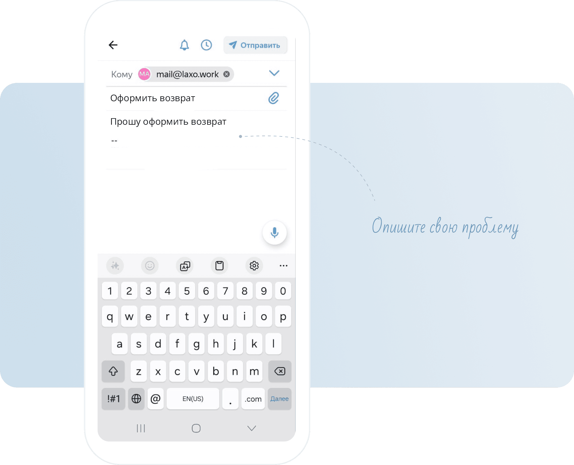 - После нажатия вы будете перенаправлены в почтовую программу, где нужно оставить заявку на возврат в формате электронного письма. Укажите сумму, которую хотите получить обратно, и поясните причину.