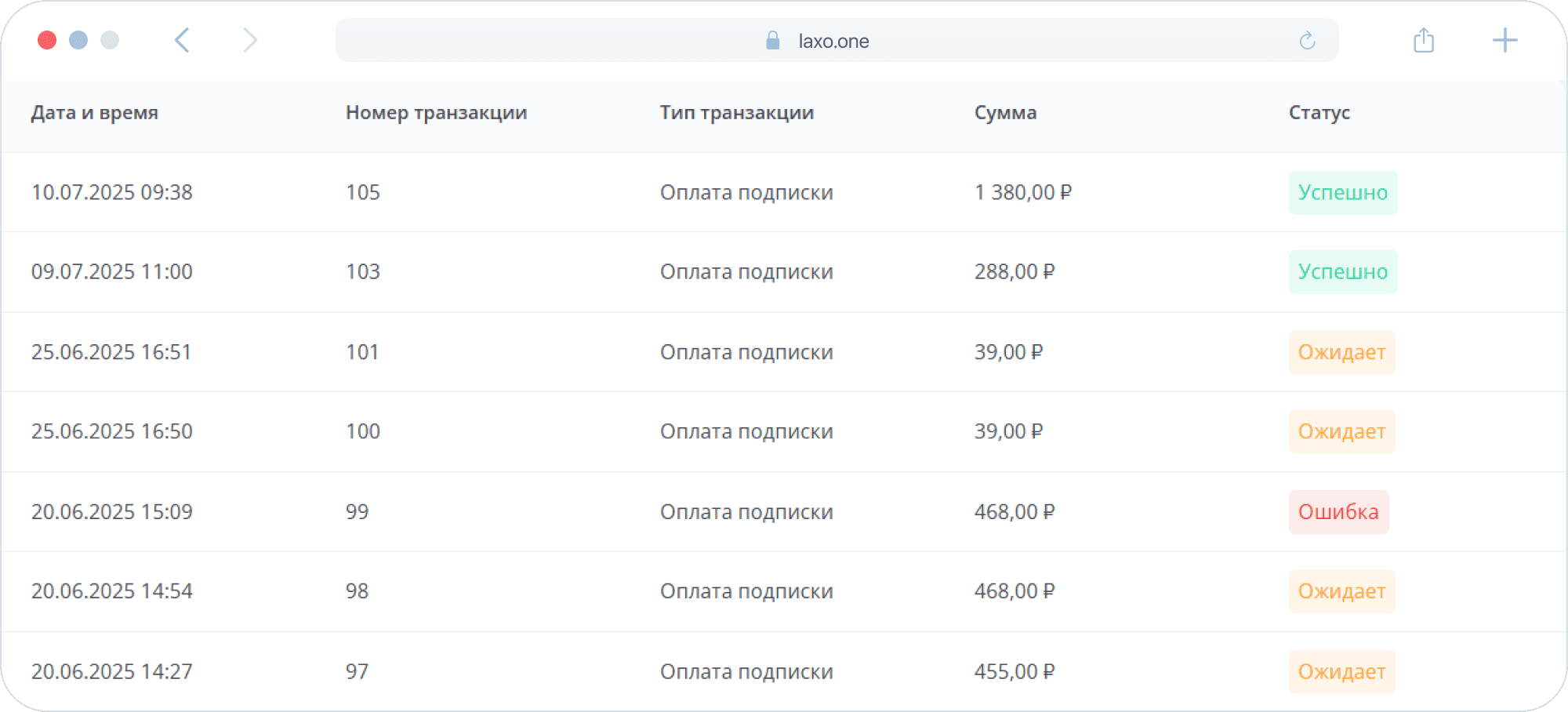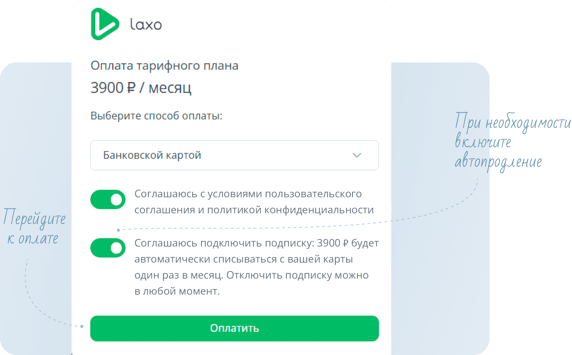 - Для удобства вы можете включить автоматическое продление подписки, тогда вы точно не потеряете доступ к laxo.