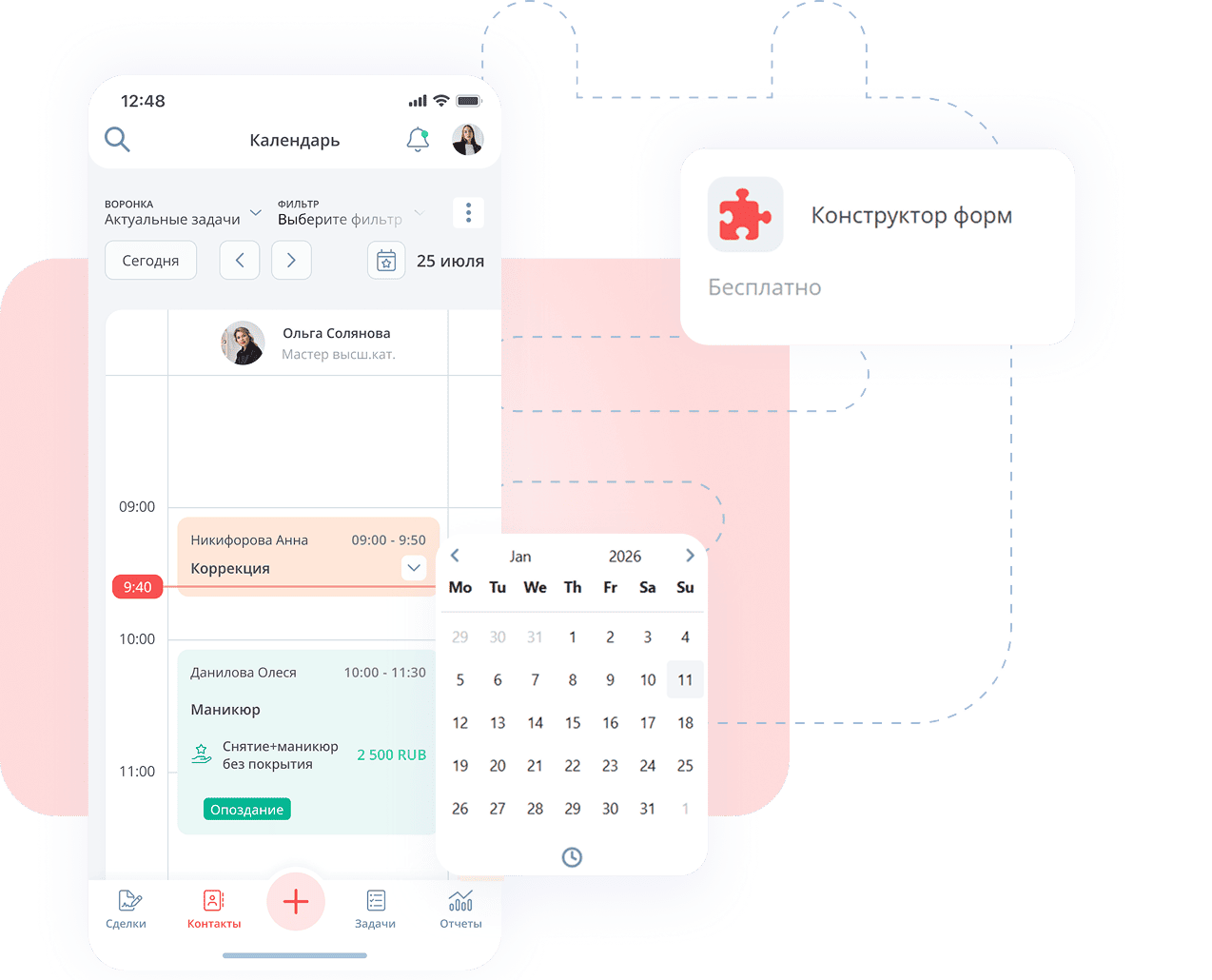 - Автоматическое добавление сделок и контактов по специальным ссылкам и формам, которые заполняет клиент.